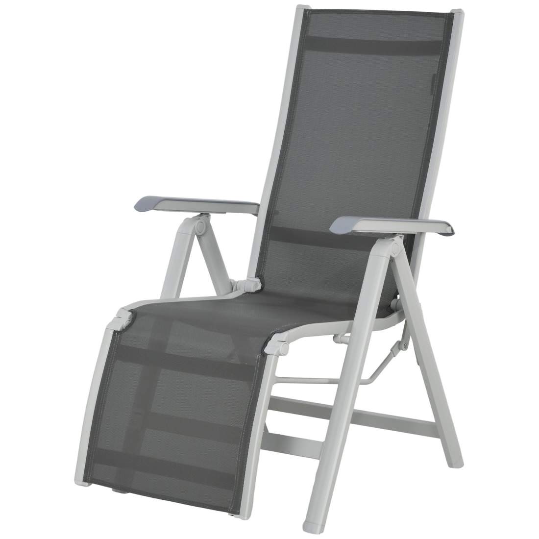 Fällbar Solstol med Justerbart Rygg- & Fotstöd, Mörkgrå