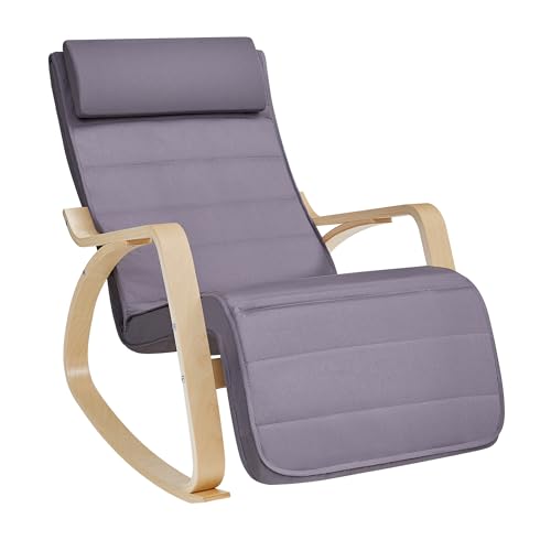 SONGMICS Gungstol, med armstöd av björkträ, gungfåtölj, 5-vägs justerbart fotstöd, kan belastas upp till 150 kg, för sovrum, vardagsrum, mörkgråa naturfärger LYY10G