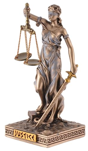 Veronese Justitia figur 34 cm – bronserad rättvisans gudinna skulptur – polyresin staty med äkta bronsbeläggning – dekoration för kontor och hem