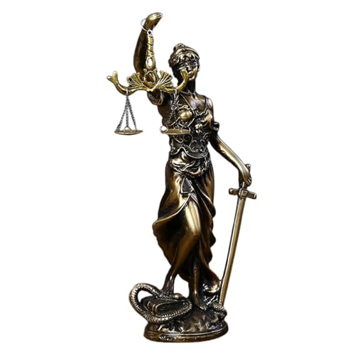 Staty of Justitia – maträttsdekoration av konstharts, högersymbol med anslutna ögon | Bronsgudinna skulptur med svärd, vågendetaljer för advokatskrivbord, advokatbyrå, hylldekoration