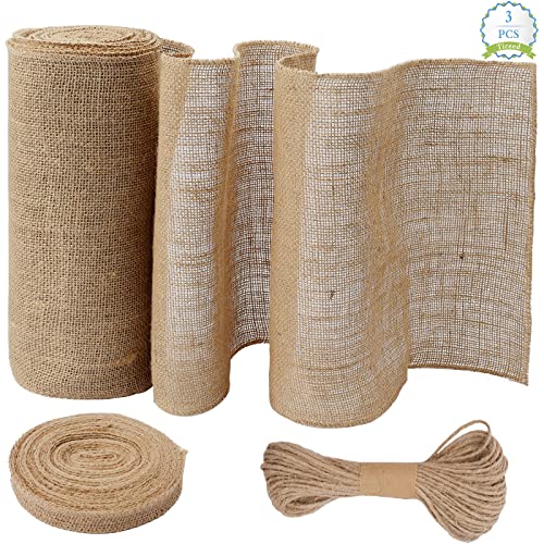 Ticeed 3 st bordslöpare rulle tillverkad av 100 % naturligt linne-jute-tyg rustik jute bordslöpare juteband för bord och bröllopsdekoration bondgård bordsdekoration (10 m)