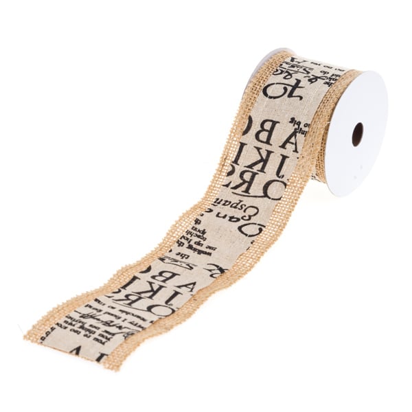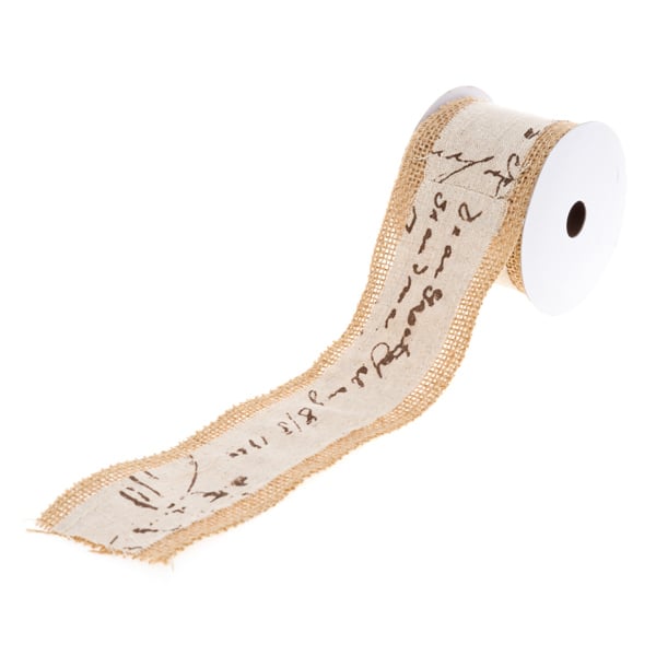 Hobby - Dekorationsband Juteband med svart text 5,8 cm