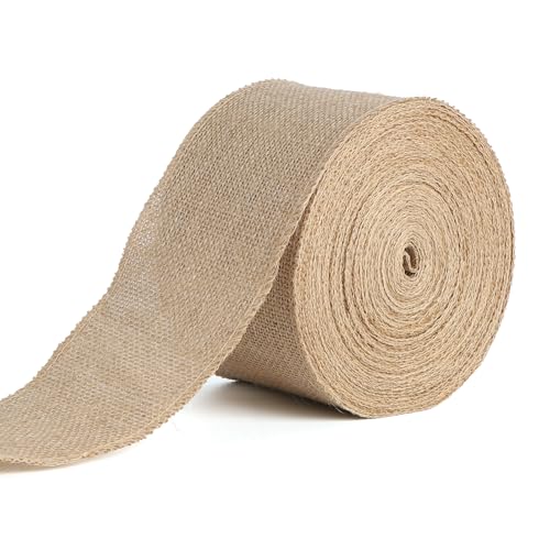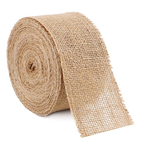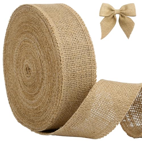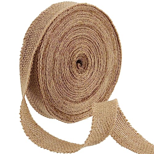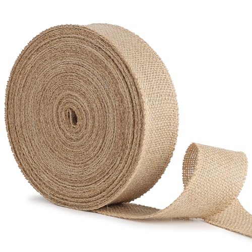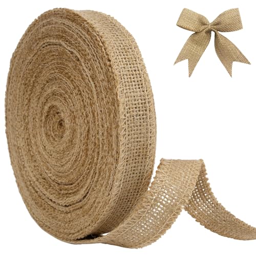 CHEUKYIU 25 m/rulle Juteband, Bredd 2,5 cm Naturligt Säckväv för Gör-det-själv Hantverk, Jul Dekoration, Bröllop, Fest och Presentförpackning