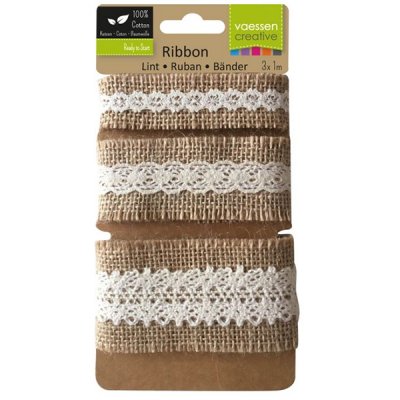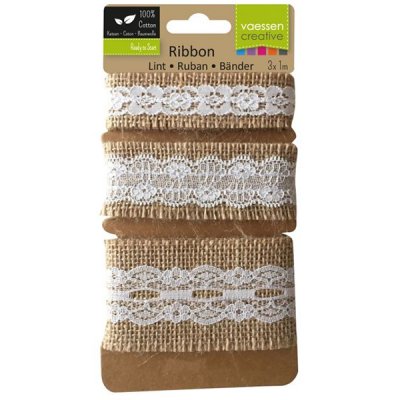 Vaessen Juteband med Spets - Creme 3 st á 1 m