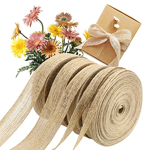 FYSL Juteband 5 rullar juteband vintage presentband, hessiskt tygband för gör-det-själv hantverk jul dekoration bröllop fest pyssel presentband (0,6/1/1,5/2/2,5 cm)