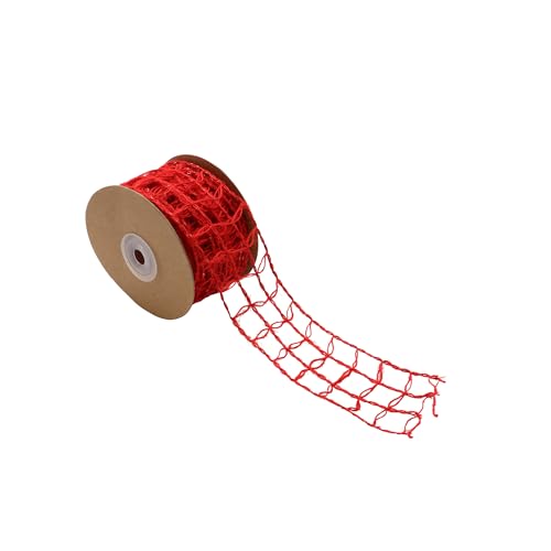 GLOREX 6 3803 452 – juteband med tråd, 5 cm tjockt, fast band med förstärkning, längd 5 m, röd, som dekoration, för hantverk och design