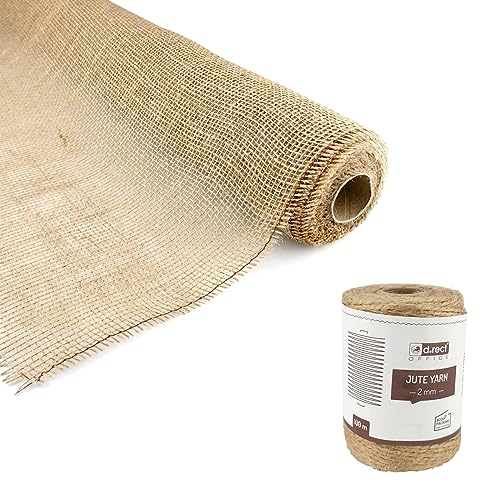 D.RECT 100 x 500 cm juteband naturligt brunt dekoband, förpackningstejp presentband pysselband, 100 cm bredd 5 meter förpackningssnöre, presentband pysselsnöre, dekorativ snöre, 2 mm tjocklek