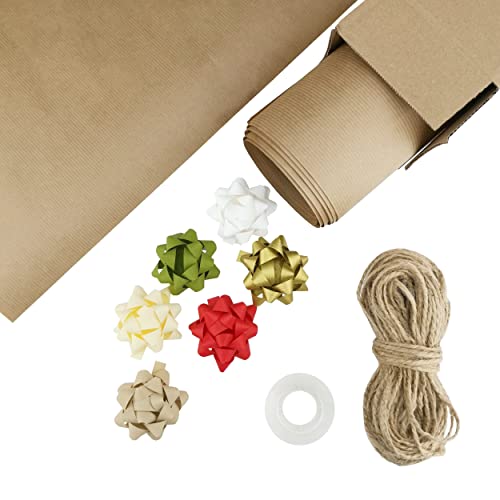 LEVIATAN Presentförpackning set 10 ark (1050 x 1260 mm) kraftpresentpapper med jutegarn 50 m 6 stycken självhäftande presentslingor tejp användbara instruktioner för inpackning av presenter