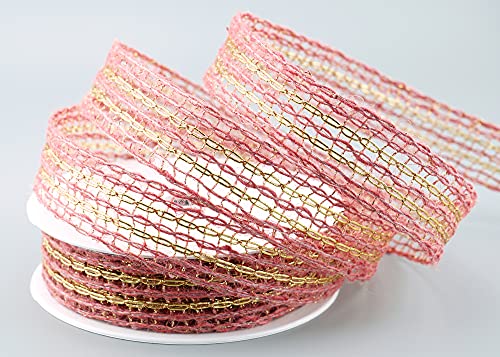 10 m x 30 mm spetsband ATENA ROSA gammalt rosa guld (155) dekorband med tråd och Lurex jute nätband med naturliga material biologiskt nedbrytbar natur lanthus blomster band bordsdekoration jutegarn