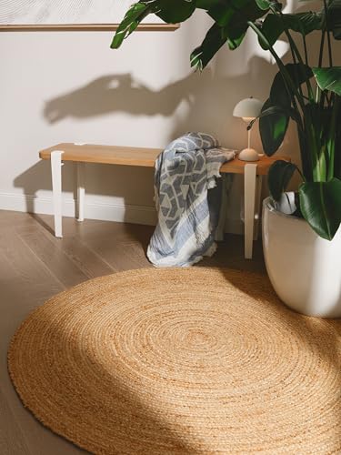 benuta Ren jute-matta Jutta – naturlig rund 120 cm – handvävd vardagsrumsmatta – naturlig boho-design – lämplig för golvvärme