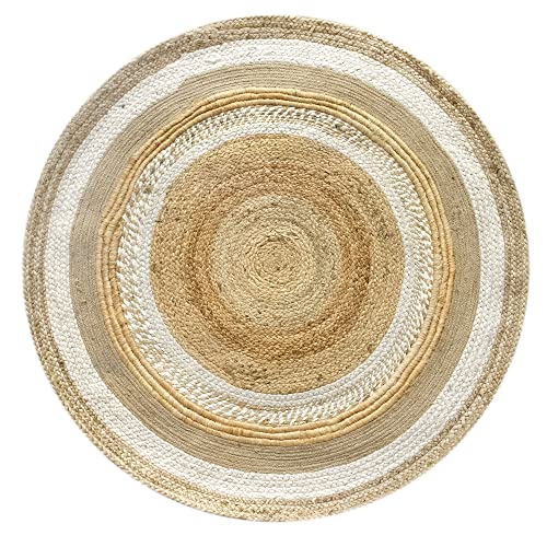 Vipanth export jutematta naturlig handflätad cirkeldesign rund matta för vardagsrum (beige, 120 x 120 cm (4 fot rund))