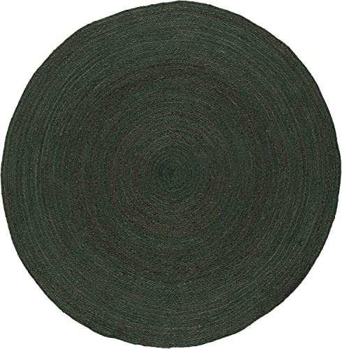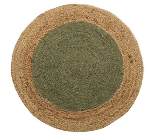 THE PIKKU INTERNATIONAL - jutematta naturlig grön färg handflätad rund matta för vardagsrum (120 x 120 cm (4 x 4 fot rund))