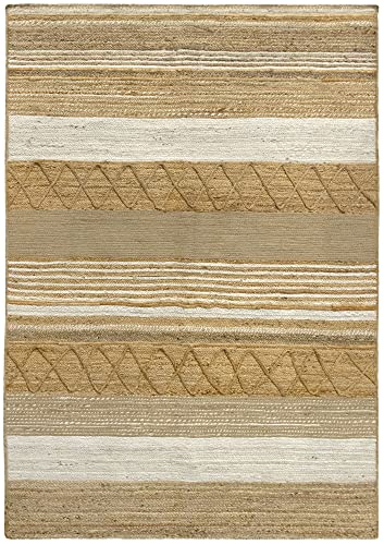 Hanse Home Jute matta – natur vardagsrumsmatta – handvävd och miljövänlig – boho naturfiber jutematta för vardagsrum, sovrum, matsal, hall, kök – naturlig vit elfenben, 120 x 170 cm