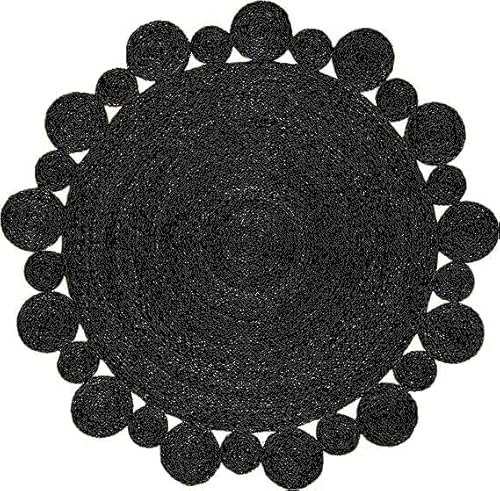 Ripaz Vogue jutematta svart färg cirkel designad handflätad rund form vardagsrum område matta heminredning (120 x 120 cm (4 fot rund matta)