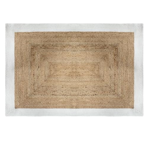 HAMID – jutematta, Sofia-matta, 100% vit och natur, handvävd, mjuk, hög hållfasthet för vardagsrum, matsal, sovrum, hallmatta – (170 x 120 cm)