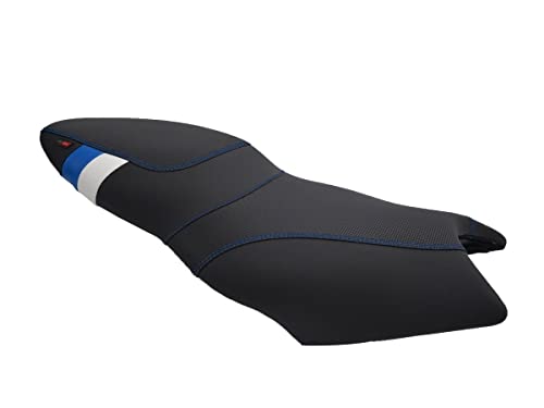 Sätesöverdrag kompatibel med BMW K1200S / K1300S 2004-2016 svart/vit/blå med blå sömmar (B)