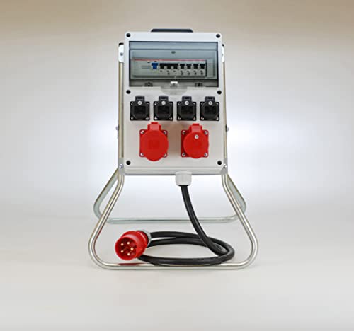 Ehmann PROFI-splitter med ram och RCD-omkopplare, tillverkad i Tyskland, 6 utgångar (1 x CEE 32 A / 1 x CEE 16 A/ 4 x 230 V~), kabel 2 m H07RN-F 5G 6,0 mm², IP54, K2, BGI -GUV-I608