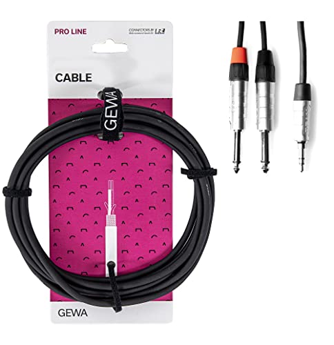 GEWA Y-kabel Pro Line 3m, svart, REAN-kontakt, 3,5 mm stereojack - 2x 6,3 mm monojack, 1907901
