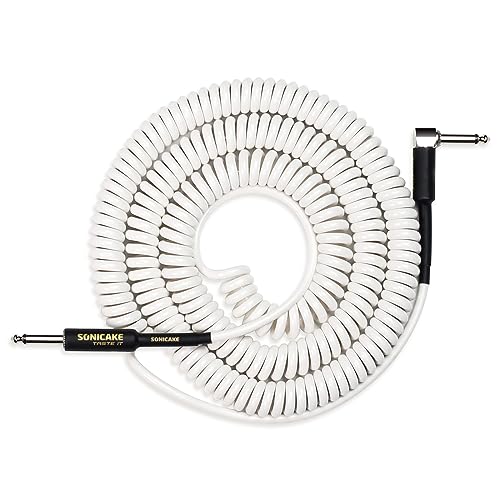 SONICAKE 10 m gitarrer instrumentkabel 6,3 mm spole kabel för gitarr bas spiralkabel med vinklad kontakt och standarduttag vit