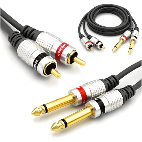 Tisino 6,3 mm uttag till RCA-kabel, 6,3 mm stereouttag till 2 x Cinch Y Splitte adapterkabel ljudkabel telekabel – 3 m