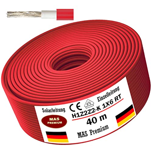 Solkabel H1Z2Z2-K 4, 6 eller 10 mm² från 5 till 100 m solkabel svart, röd eller blå kan förläggas i mark, enkel kabel, fotovoltaik, halogenfri, dubbelisolerad (H1Z2Z2-K 6, röd, 40 m)