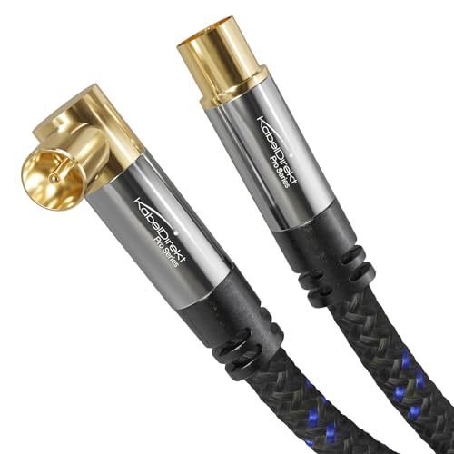 KabelDirekt – HDTV-antennkabel 75 Ohm – 10m – 90° vinklad koaxial hon-anslutning > rak koaxial han-anslutning, koaxialkabel för TV, HDTV, radio, DVB-T2, DVB-C, DVB-S, flätad