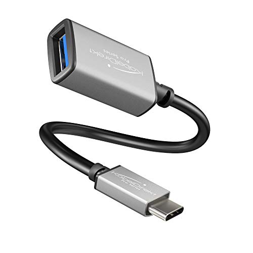 KabelDirekt – OTG-adapter – 0,15m – (USB A 3.0 hon-anslutning på USB C-anslutning, SuperSpeed, för hårddisk, kortläsare, minnessticka, mus, tangentbord, svart/rymdgrå) –
