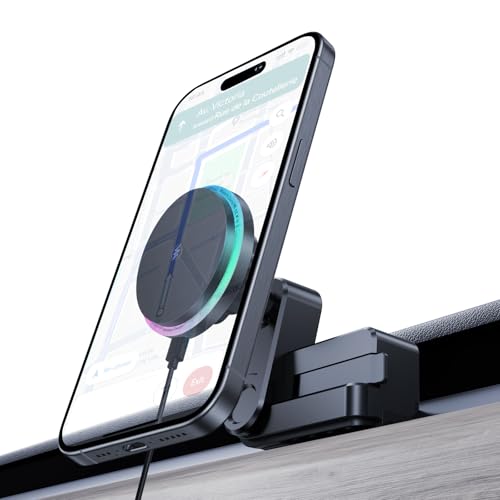 LANTU 15 W RGB mobiltelefonhållare för Tesla Tesla Model Y 2020–2024 och Model 3 2017–2023 magnet mobiltelefonhållare bilmagnet med 1 m C-C-kabel för iPhone 12-16-serien och magnetfodral (färgglad RGB