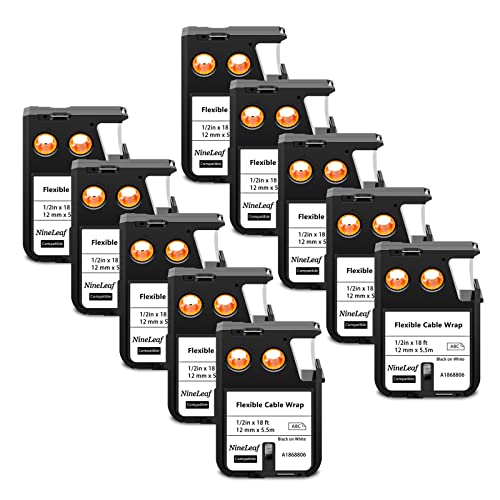 NineLeaf 10-pack 12 mm svart på vit flexibel kabelbindning nylonetiketter kompatibel med DYMO 1868806 12 mm (1/2 tum) x 5,5 m (18 fot) användning i Rhino XTL-300 XTL-500 etikettskrivare