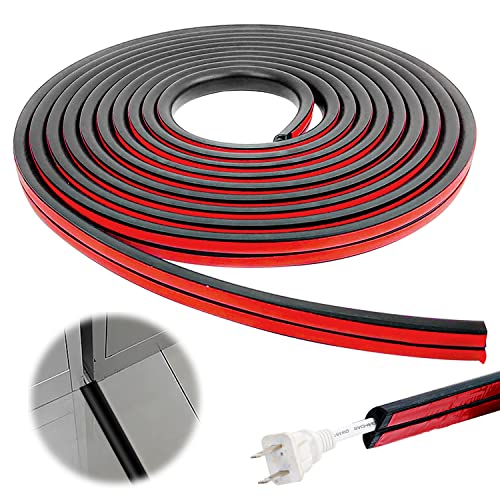 Choonjin Kabelkanal självhäftande 6 m längd, halvrund botten kabelbrott, kabelfack, kabelkanal golv av PVC, golvkabelskydd, kabelkanaler för alla nätkablar i hushåll, kaliber 8 mm (svart)