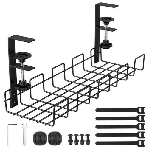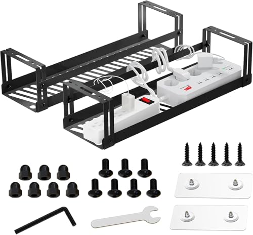 Chiluxendo Kabelställ för skrivbord, kabelförvaring, kabelhantering under skrivbord, kabelrännor, kabelhanteringsplatta, kabelrännor utan borrning för kontor och hem (svart)