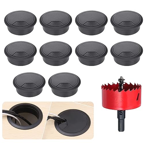 Kabelgenomföring skrivbord 10 stycken 60 mm kabelgenomsläpp med 1 hålsåg, kabelgenomsläpp, svart med hålsåg av metall, bord, kabelgenomföring rund för bord, kontor, bänkskivor, kabelhantering
