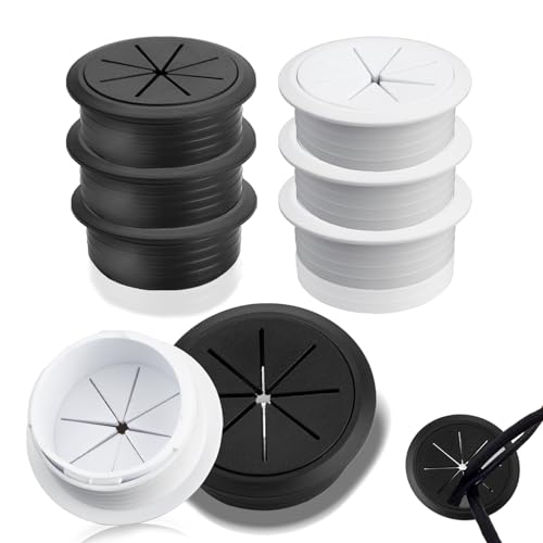 SWTYExt 50 mm kabelgenomföring 6 stycken kabelgenomföring skrivbord vit och svart kabelgenomsläpp skrivbord plast bord kabelgenomföring för skrivbord skola kontor organiserad kabel
