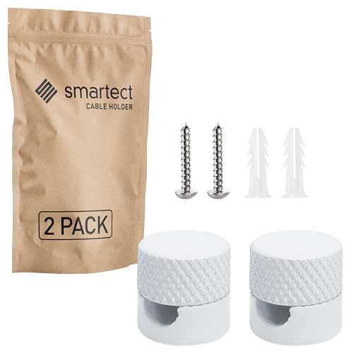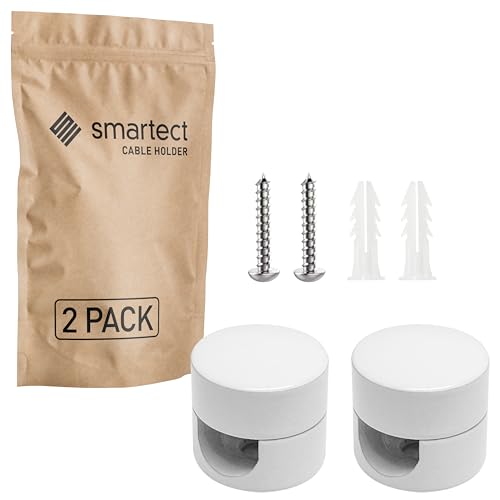 smartect Aluminium Vägg- och takmontering för fixering av Kabel [2 Stycken, Vit] Takmontering Ytmonterad Kabelhållare med skruvar och pluggar, Kabelupphängning för egna DIY-projekt