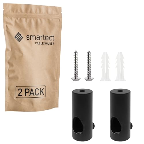 smartect Aluminium Vägg- och takmontering för fixering av Kabel [2 Stycken, Svart] Takmontering Ytmonterad Kabelhållare med skruvar och pluggar, Kabelupphängning för egna DIY-projekt
