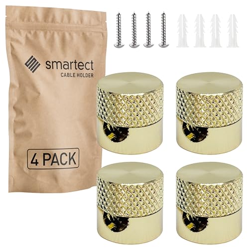 smartect Aluminium Vägg- och takmontering för Kabel [4 Stycken, korrugerad, Guld] Takmontering Ytmonterad Kabelhållare med skruvar och pluggar, Kabelupphängning för egna DIY-projekt