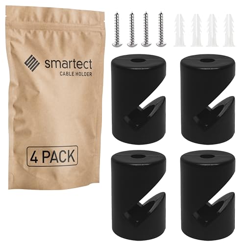 smartect Vägg- och takmontering för Kabel [4 Stycken, Svart] Takmontering Ytmonterad Kabelhållare med skruvar och pluggar, Kabelupphängning för egna DIY-projekt