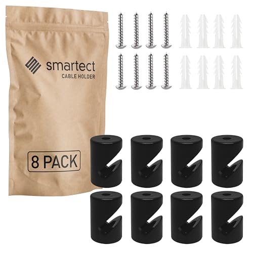 smartect Vägg- och takmontering för Kabel [8 Stycken, Svart] Takmontering Ytmonterad Kabelhållare med skruvar och pluggar, Kabelupphängning för egna DIY-projekt