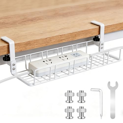 DECOHOME Kabelhanteringsbricka under skrivbord, kabelhantering utan borrning, kabelkorg för hantering av kablar och grenuttag, inga skruvar, prydlig låda, trådorganiserare för hem, kontor,