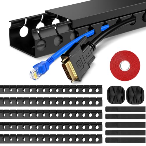 Kabelkanal för racerbana, öppen spår, kabelkanal för TV-kabel, kabelconcealer, kabelbricka, kabelhantering, tunnel, under skrivbord (2-pack)