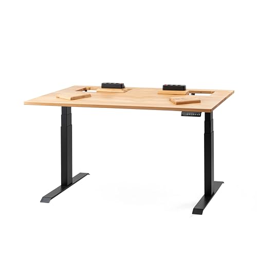 ErgoHide® Höjdjusterbart skrivbord i massivt trä med utökad kabelhantering/kabelkanal (ek, svart, rektangulär, 180 x 80 cm)