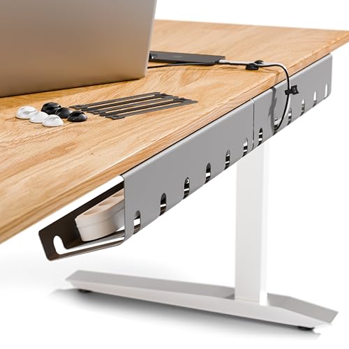 E.For.U® Kabelkanal skrivbord, set om 2, för snygg kabelhantering vid skrivbordet inklusive tillbehör, kabeldragning, kabelhållare, kabelhållare, kabelförvaring, enkel montering (grå)