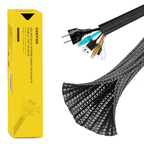 SURFOU Kabelslang svart 3,1 m x 13 mm, kabelskydd kabelkanal flexibelt skrivbord, kabelhylsa kabelskyddsslang, kabelärmar kabelhölje självlåsande slang, skyddsslang