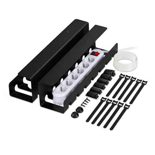 UNITURE® Kabelkanal skrivbord [DEKRA certifierad] – uppsättning med 1 kabelhantering – 40 cm lång kabelhållare – kabeldragning – Cable Management Under Desk – svart
