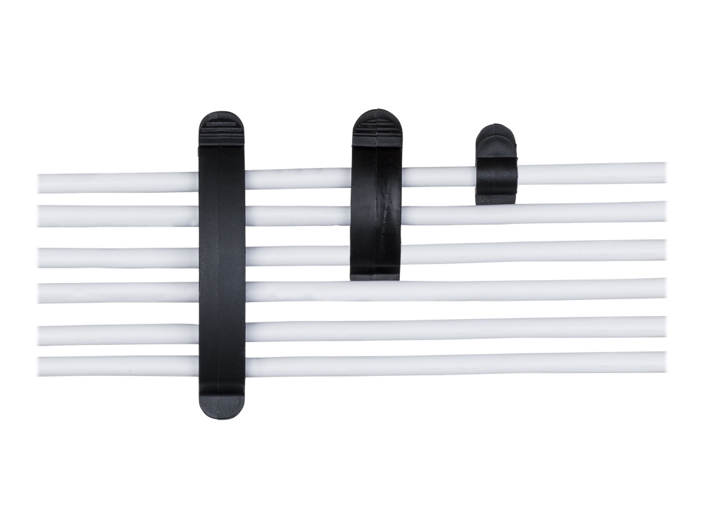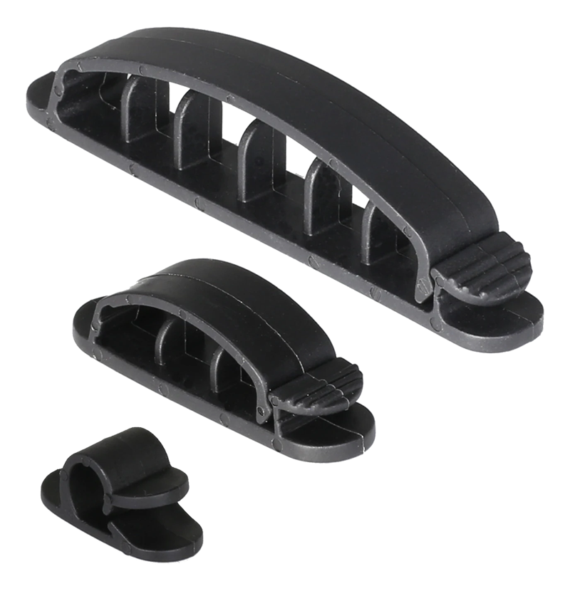 DELTACO självhäftande kabelklämmor i plast, 1/3/6 platser, 10-pack, svart