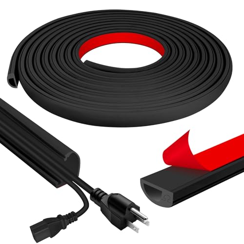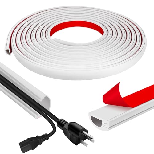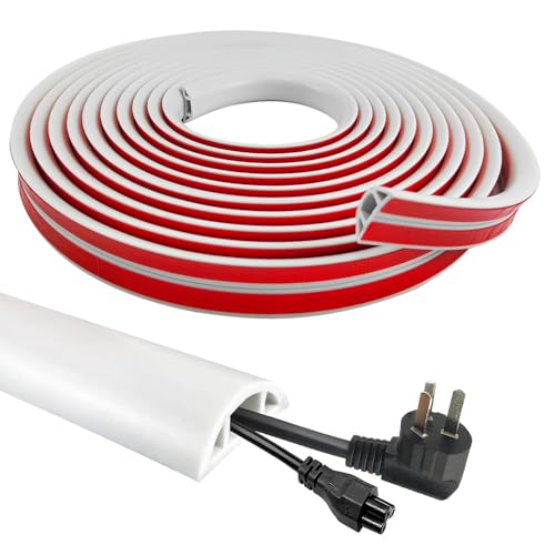 Umllpet Kabelkanal självhäftande, enkelsladd kabelkanal, kabelkanaler med skumtejp redo för montering på väggen, golv kabelskydd för hem kontor skola (10 meter-vit)