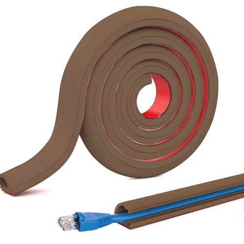 Kabelkanal brun självhäftande flexibel kabelskydd – 6 meter x 25 mm x 14 mm PVC kabelskydd golv för 2–4 kablar, för hem, kontor, skola, förråd