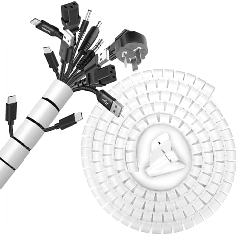 AiQInu 3 m kabelskydd, 2 stycken 22–28 mm kabelslang flexibel med 1 kabelklämma, spiralslang kabelslang för skrivbord, TV, PC-golv