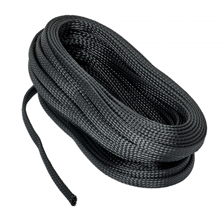 Självstängande Flätad Sladd 25Mm, 50M, Svart, Kabelstrumpa,