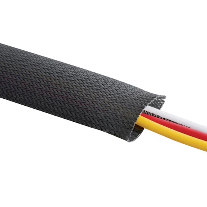 Cable Cover - Ø 25 mm, flätad kabelstrumpa, självstängande, 25 m rulle, svart